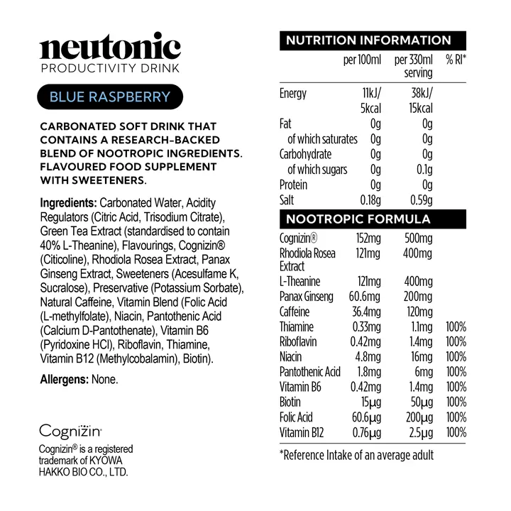 NEUTONIC PRODUCTIVITY NOOTROPIC ENERGY DRINK 12X330ML