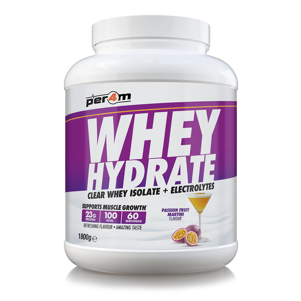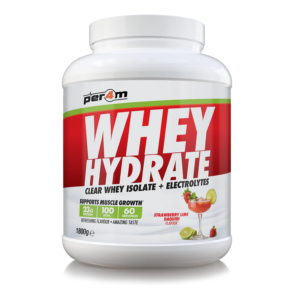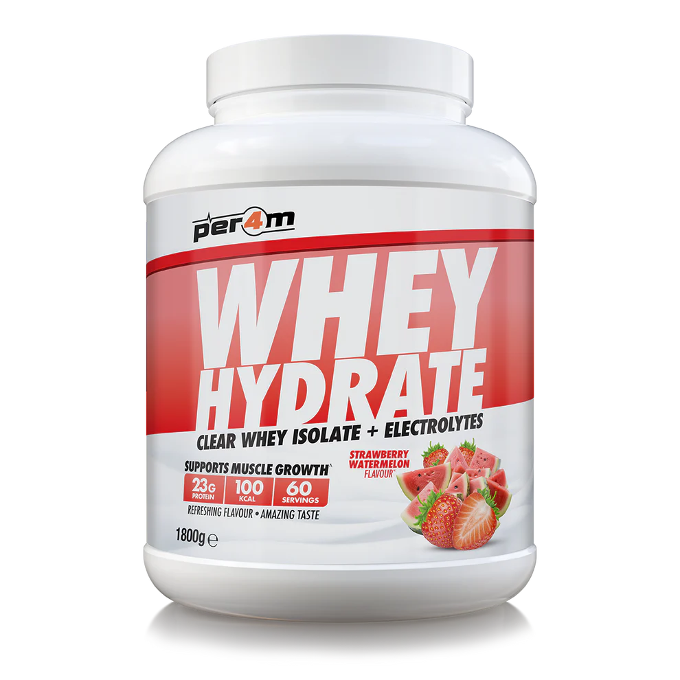 Per4m Whey Hydrate is a refreshing, high-protein drink that supports both recovery and hydration in one clean, light shake. It delivers 23g of ultra-filtered clear whey isolate with added electrolytes and vitamins – designed to help your body repair, refuel and rehydrate without the milky taste or texture of a traditional protein shake.