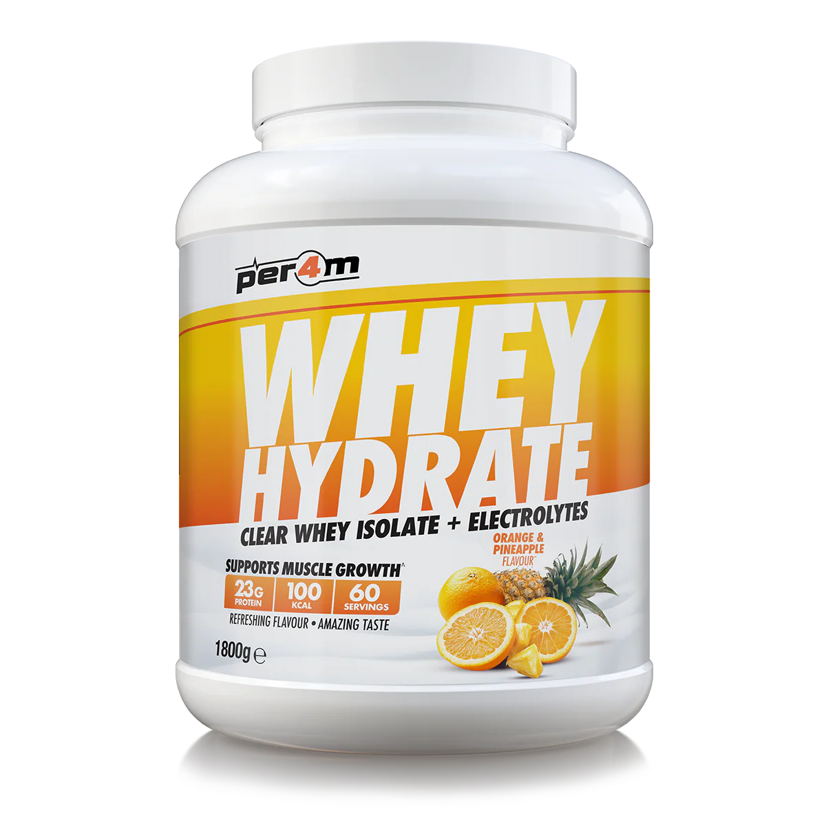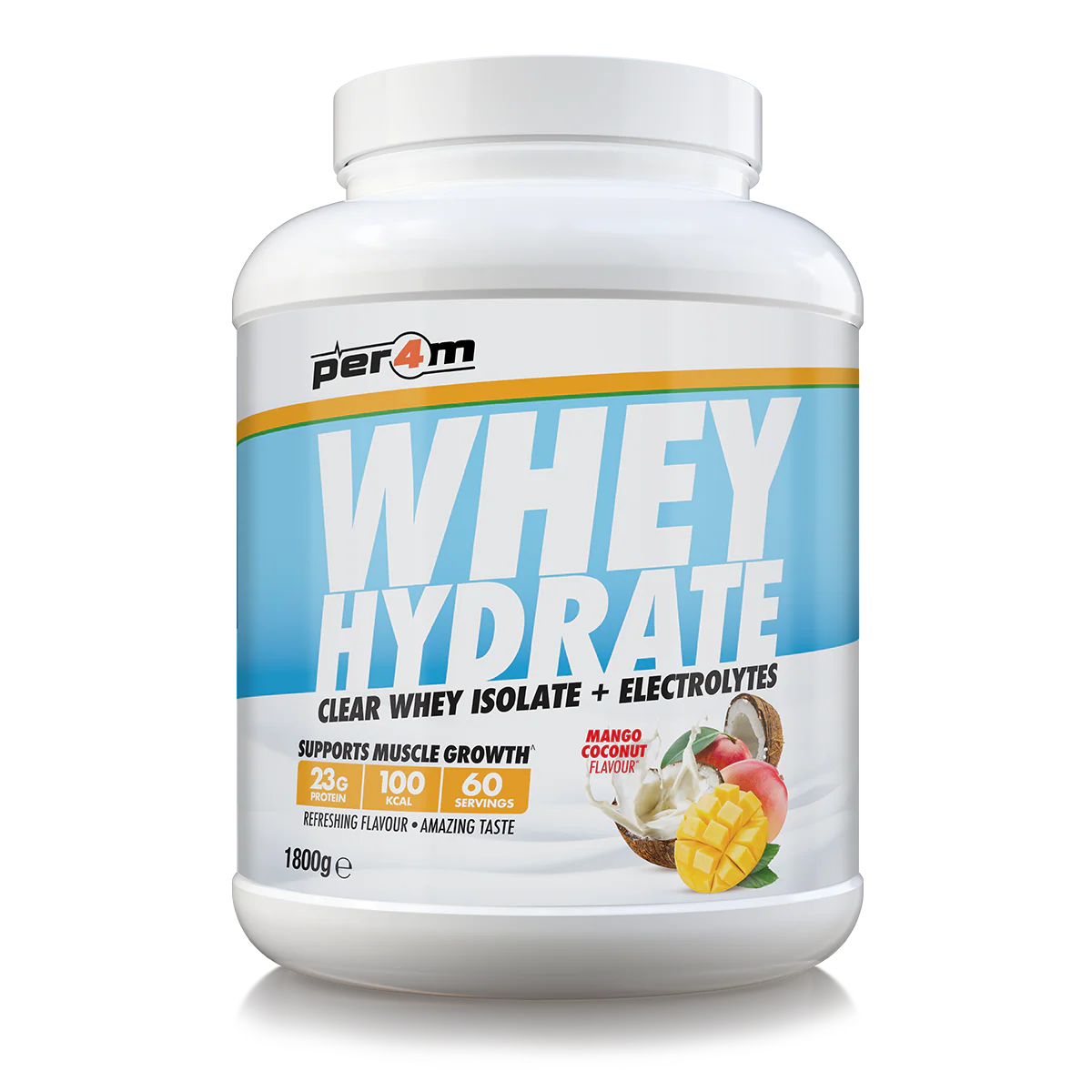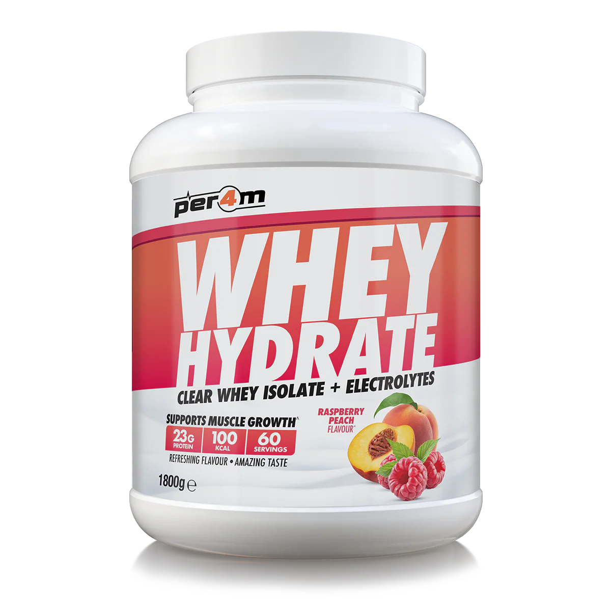 Per4m Whey Hydrate is a refreshing, high-protein drink that supports both recovery and hydration in one clean, light shake. It delivers 23g of ultra-filtered clear whey isolate with added electrolytes and vitamins – designed to help your body repair, refuel and rehydrate without the milky taste or texture of a traditional protein shake.