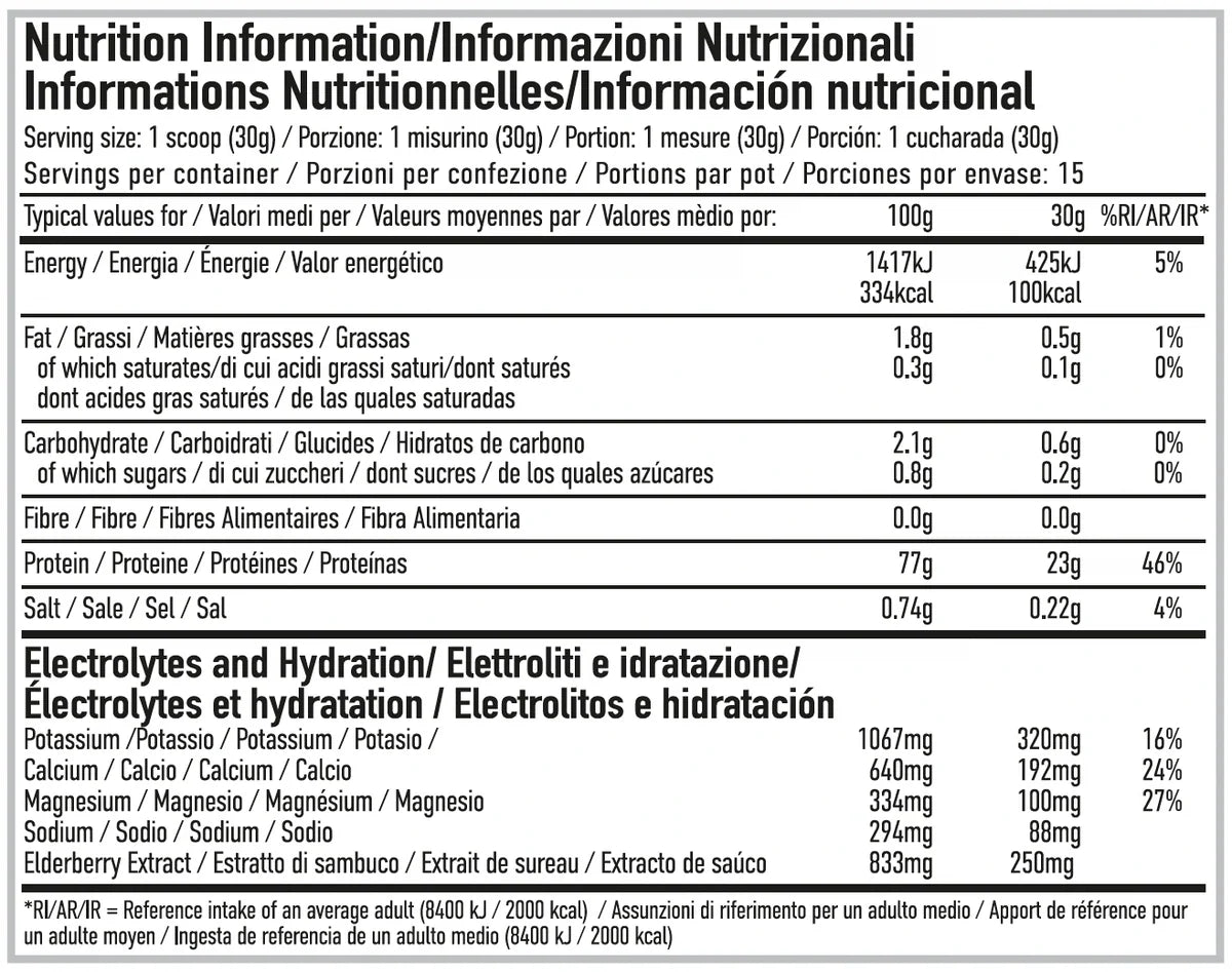 This dual-action formula supports two key areas: muscle recovery and hydration. The high-quality whey isolate provides a full amino acid profile to support muscle growth and repair, while the added electrolytes – magnesium, potassium, calcium, and sodium – help maintain hydration, reduce fatigue, and support normal muscle function after exercise.