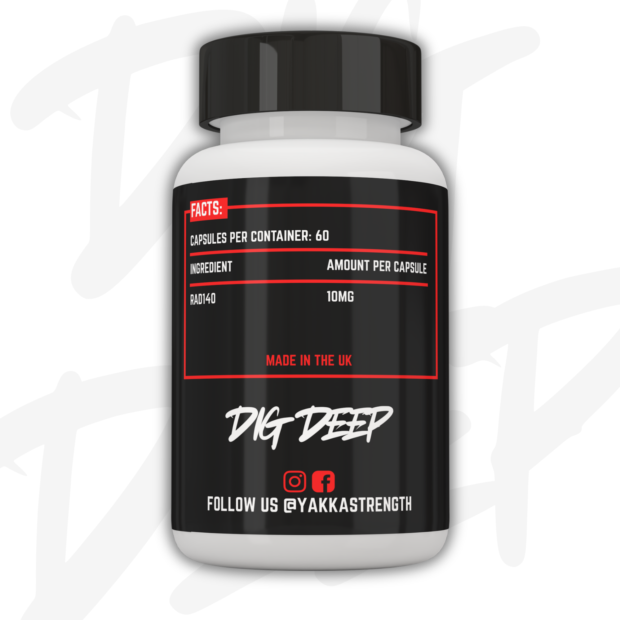 Yakka Strength research compound is supplied in capsule form, containing 60 capsules at 10mg per capsule.